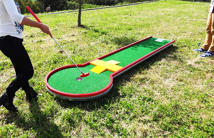 O campo de minigolfe do Parque Aventura é constituído por 6 pistas, situadas no patamar do Parque Infantil.