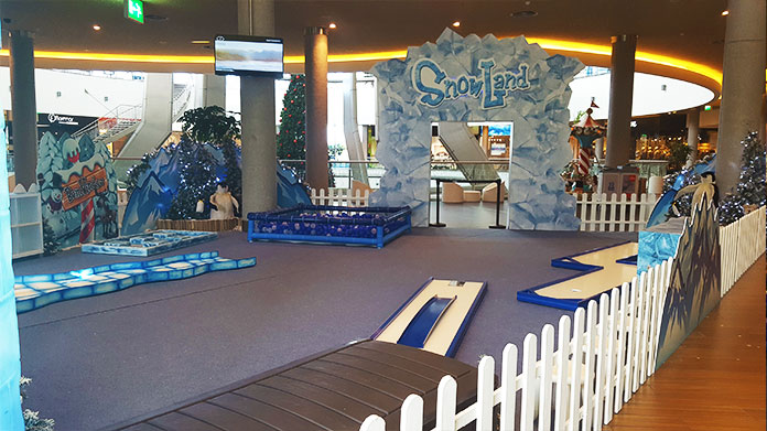 Dentro do espaço é possível jogar minigolfe, nas pistas desenhadas exclusivamente para este evento pela Lusogolfe, empresa especializada em todo o tipo de material para a prática de minigolfe, e ainda mergulhar na divertida piscina de bolas.