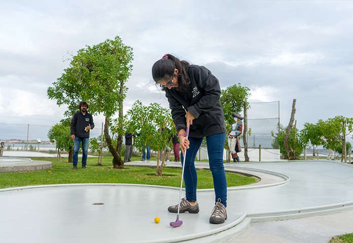 O encontro reuniu os participantes das duas instituições no campo da Aventura dos Piratas, numa tarde desportiva e que para muitos foi a primeira experiência com Minigolfe.